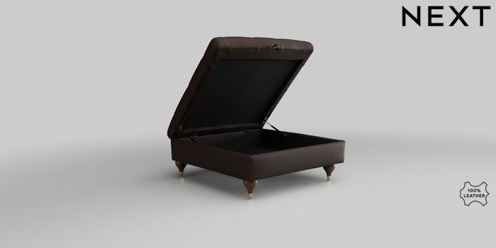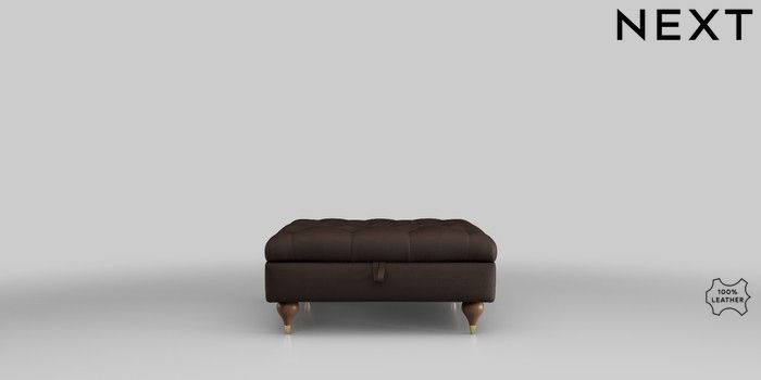 6.12.1 Buy Gosford Leather Deep Sit Extra Large Storage Footstool Turin Leather Dark Brown Modern Turned Metal Cap - Mid from the Next UK online shop Click here to use our accessible website