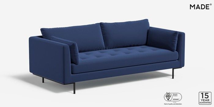 6.11.4 Buy Harlow by Made 3 Seater Small Sofa Matt Velvet Easy Clean Navy Blue Skinny - Black from the Next UK online shop Click here to use our accessible website
