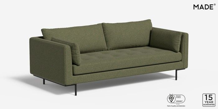 6.10.9 Buy Harlow by Made 3 Seater Small Sofa Textured Woven Meadow Green Skinny - Black from the Next UK online shop Click here to use our accessible website