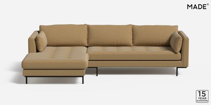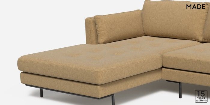7.2.10 Buy Harlow by Made Medium Sofa Chaise - Left Hand Textured Slub Weave Caramel Natural Skinny - Black from the Next UK online shop Click here to use our accessible website