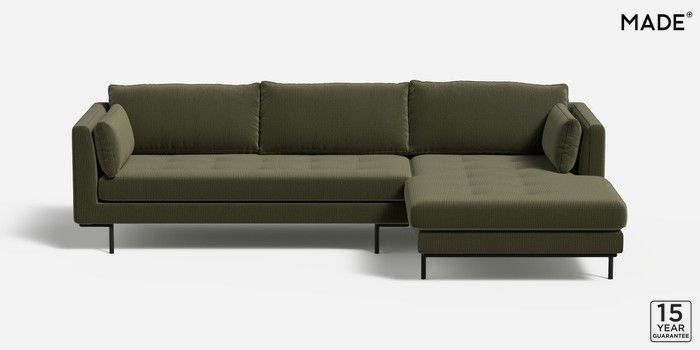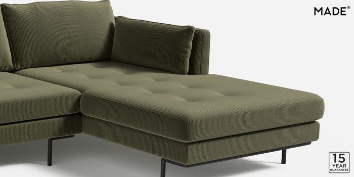6.12.13 Buy Harlow by Made Medium Sofa Chaise - Right Hand Matt Corduroy Fennel Green Skinny - Black from the Next UK online shop Click here to use our accessible website