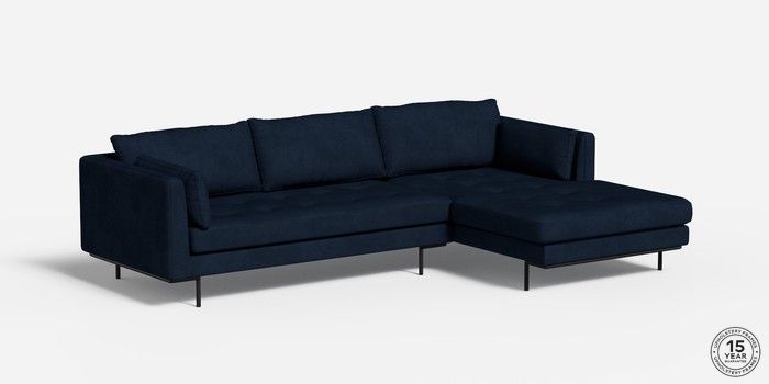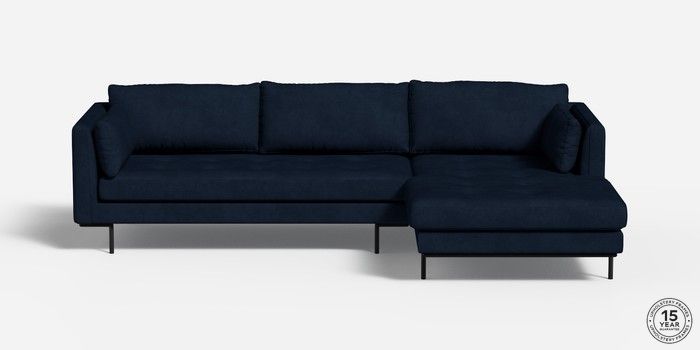 6.12.1 Buy Harlow by Made Medium Sofa Chaise - Right Hand Matt Velvet Easy Clean Dark Navy Blue Skinny - Black from the Next UK online shop Click here to use our accessible website