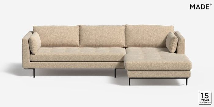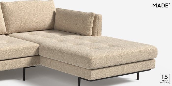 6.12.1 Buy Harlow by Made Medium Sofa Chaise - Right Hand Soft Touch Boucle Natural Linen Skinny - Black from the Next UK online shop Click here to use our accessible website