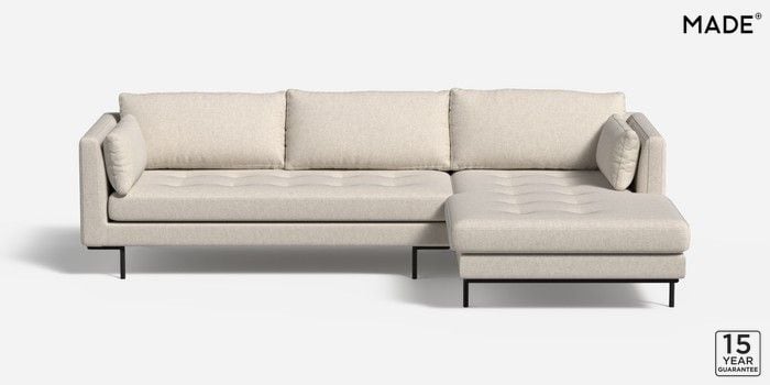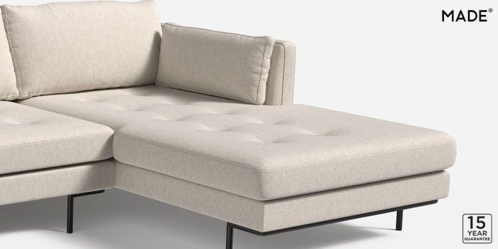 7.2.10 Buy Harlow by Made Medium Sofa Chaise - Right Hand Textured Slub Weave Light Natural Skinny - Black from the Next UK online shop Click here to use our accessible website