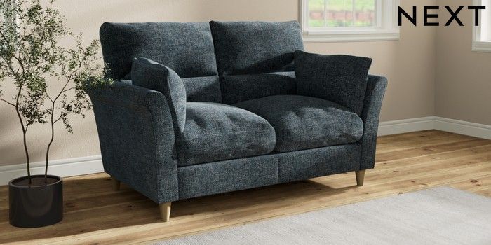 7.3.1 Buy Hartley Highback Relaxed Sit 2 Seater Sofa Chunky Chenille Dark Navy Blue Low Conical - Light from the Next UK online shop