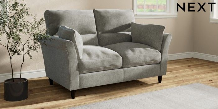7.3.1 Buy Hartley Highback Relaxed Sit 2 Seater Sofa Chunky Chenille Light Grey Low Conical - Dark from the Next UK online shop