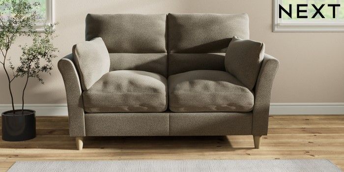 7.2.10 Buy Hartley Highback Relaxed Sit 2 Seater Sofa Chunky Marl Light Olive Green Low Conical - Light from the Next UK online shop Click here to use our accessible website