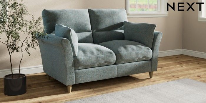 7.3.1 Buy Hartley Highback Relaxed Sit 2 Seater Sofa Chunky Marl Mid Blue Low Conical - Light from the Next UK online shop