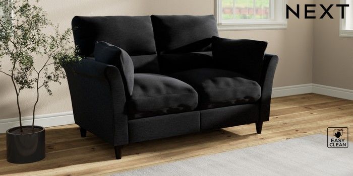 7.3.1 Buy Hartley Highback Relaxed Sit 2 Seater Sofa Fine Chenille Easy Clean Black Low Conical - Dark from the Next UK online shop