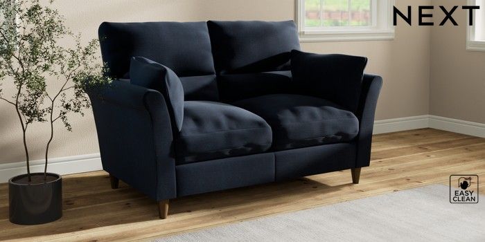 7.3.1 Buy Hartley Highback Relaxed Sit 2 Seater Sofa Fine Chenille Easy Clean Dark Navy Blue Low Conical - Mid from the Next UK online shop