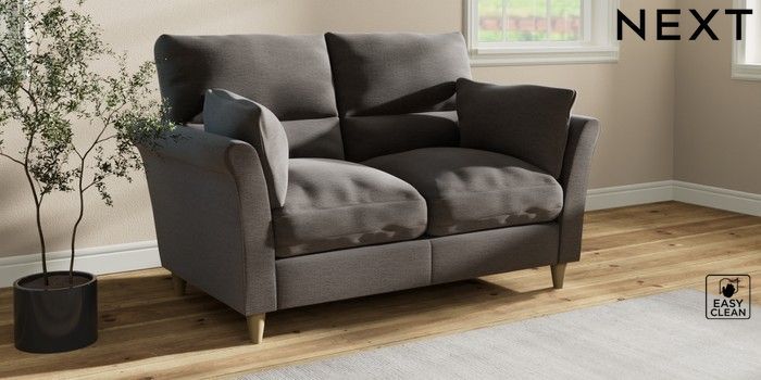 7.3.1 Buy Hartley Highback Relaxed Sit 2 Seater Sofa Fine Chenille Easy Clean Dark Smoke Grey Low Conical - Light from the Next UK online shop