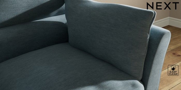 7.3.1 Buy Hartley Highback Relaxed Sit 2 Seater Sofa Fine Chenille Easy Clean Mid Blue Low Conical - Light from the Next UK online shop
