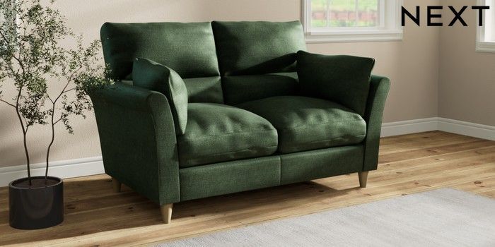 7.3.1 Buy Hartley Highback Relaxed Sit 2 Seater Sofa Luxe Chenille Dark Green Low Conical - Light from the Next UK online shop