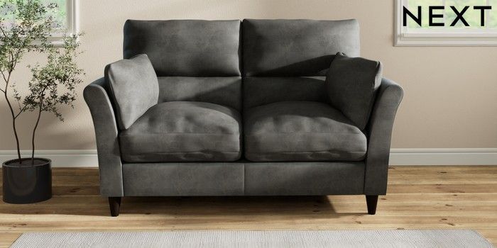 7.3.1 Buy Hartley Highback Relaxed Sit 2 Seater Sofa Monza Faux Leather Easy Clean Dark Grey Low Conical - Dark from the Next UK online shop Click here to use our accessible website