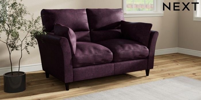 7.3.1 Buy Hartley Highback Relaxed Sit 2 Seater Sofa Plush Chenille Dark Plum Purple Low Conical - Dark from the Next UK online shop