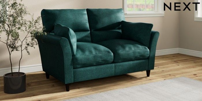 7.3.1 Buy Hartley Highback Relaxed Sit 2 Seater Sofa Plush Chenille Dark Teal Green Low Conical - Dark from the Next UK online shop