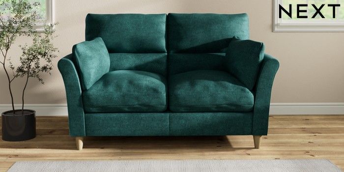 7.2.10 Buy Hartley Highback Relaxed Sit 2 Seater Sofa Plush Chenille Dark Teal Green Low Conical - Light from the Next UK online shop Click here to use our accessible website