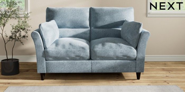 7.2.6 Buy Hartley Highback Relaxed Sit 2 Seater Sofa Plush Chenille Light Blue Low Conical - Dark from the Next UK online shop Click here to use our accessible website