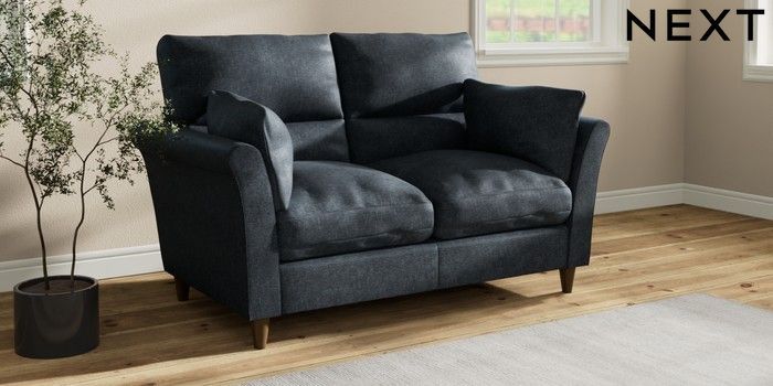 7.3.1 Buy Hartley Highback Relaxed Sit 2 Seater Sofa Plush Chenille Slate Blue Low Conical - Mid from the Next UK online shop