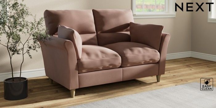 7.3.1 Buy Hartley Highback Relaxed Sit 2 Seater Sofa Plush Velvet Easy Clean Mid Natural Low Conical - Light from the Next UK online shop