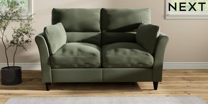 7.2.10 Buy Hartley Highback Relaxed Sit 2 Seater Sofa Relaxed Linen Look Dark Green Low Conical - Dark from the Next UK online shop Click here to use our accessible website