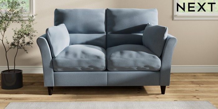 7.2.10 Buy Hartley Highback Relaxed Sit 2 Seater Sofa Relaxed Linen Look Mid Blue Low Conical - Dark from the Next UK online shop Click here to use our accessible website
