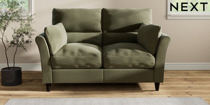 7.2.10 Buy Hartley Highback Relaxed Sit 2 Seater Sofa Ripple Chenille Mid Moss Green Low Conical - Dark from the Next UK online shop Click here to use our accessible website