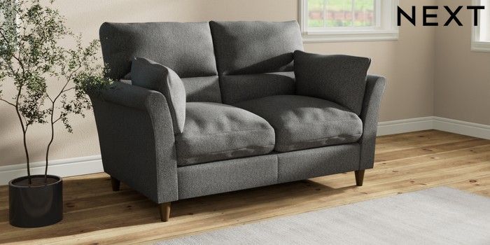 7.3.1 Buy Hartley Highback Relaxed Sit 2 Seater Sofa Tweedy Chenille Dark Grey Low Conical - Mid from the Next UK online shop