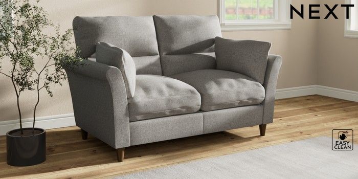 7.3.1 Buy Hartley Highback Relaxed Sit 2 Seater Sofa Woven Chenille Easy Clean Light Grey Low Conical - Mid from the Next UK online shop