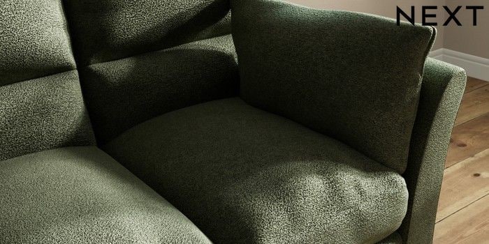 7.3.1 Buy Hartley Highback Relaxed Sit 3 Cushion 3 Seater Sofa Boucle Chenille Dark Moss Green Low Conical - Light from the Next UK online shop