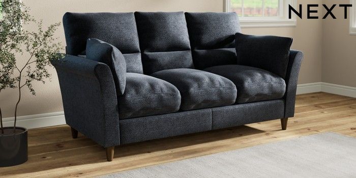 7.3.1 Buy Hartley Highback Relaxed Sit 3 Cushion 3 Seater Sofa Boucle Chenille Dark Slate Blue Low Conical - Mid from the Next UK online shop