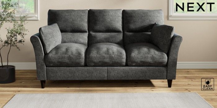 7.3.1 Buy Hartley Highback Relaxed Sit 3 Cushion 3 Seater Sofa Boucle Weave Easy Clean Charcoal Grey Low Conical - Dark from the Next UK online shop Click here to use our accessible website