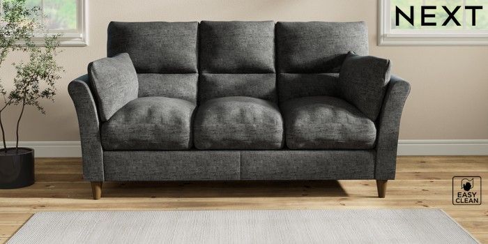 7.2.10 Buy Hartley Highback Relaxed Sit 3 Cushion 3 Seater Sofa Boucle Weave Easy Clean Charcoal Grey Low Conical - Mid from the Next UK online shop Click here to use our accessible website