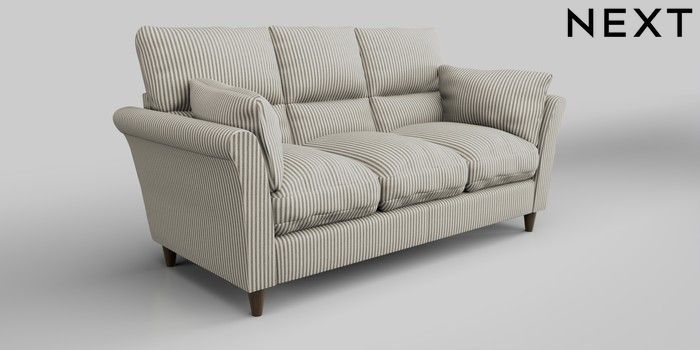 6.12.1 Buy Hartley Highback Relaxed Sit 3 Cushion 3 Seater Sofa Chenille Stripe Moss Green Low Conical - Mid from the Next UK online shop Click here to use our accessible website