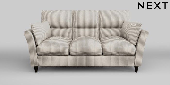 7.0.3 Buy Hartley Highback Relaxed Sit 3 Cushion 3 Seater Sofa Chenille Stripe Natural Low Conical - Dark from the Next UK online shop Click here to use our accessible website