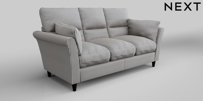 6.12.1 Buy Hartley Highback Relaxed Sit 3 Cushion 3 Seater Sofa Chenille Stripe Slate Blue Low Conical - Dark from the Next UK online shop Click here to use our accessible website