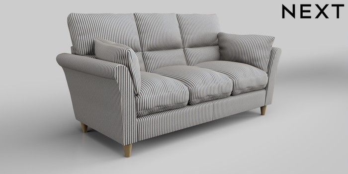 6.12.1 Buy Hartley Highback Relaxed Sit 3 Cushion 3 Seater Sofa Chenille Stripe Slate Blue Low Conical - Light from the Next UK online shop Click here to use our accessible website