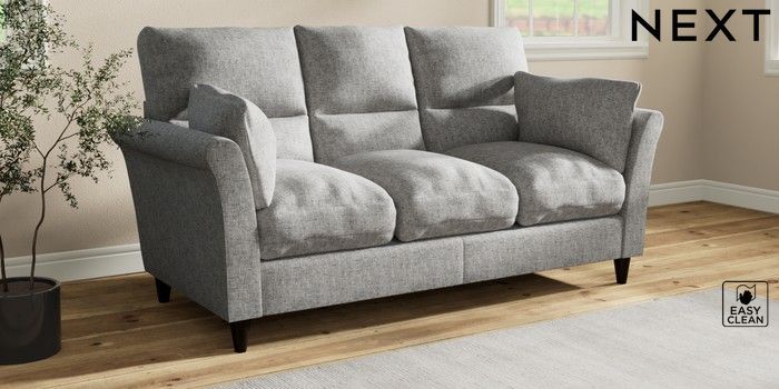 7.3.1 Buy Hartley Highback Relaxed Sit 3 Cushion 3 Seater Sofa Chunky Boucle Easy Clean Light Grey Low Conical - Dark from the Next UK online shop