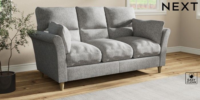 7.3.1 Buy Hartley Highback Relaxed Sit 3 Cushion 3 Seater Sofa Chunky Boucle Easy Clean Light Grey Low Conical - Light from the Next UK online shop