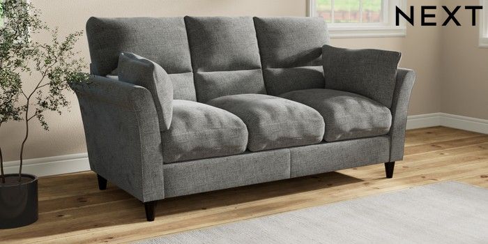 7.3.1 Buy Hartley Highback Relaxed Sit 3 Cushion 3 Seater Sofa Chunky Chenille Dark Grey Low Conical - Dark from the Next UK online shop