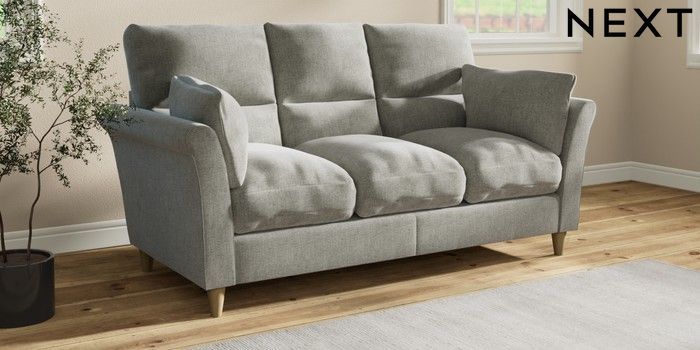 7.3.1 Buy Hartley Highback Relaxed Sit 3 Cushion 3 Seater Sofa Chunky Chenille Light Grey Low Conical - Light from the Next UK online shop