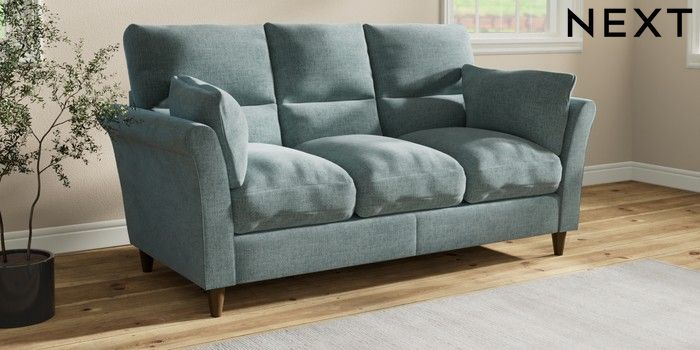 7.3.1 Buy Hartley Highback Relaxed Sit 3 Cushion 3 Seater Sofa Chunky Chenille Light Teal Green Low Conical - Mid from the Next UK online shop
