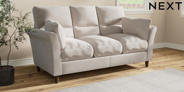 7.3.1 Buy Hartley Highback Relaxed Sit 3 Cushion 3 Seater Sofa Chunky Chenille Oyster Low Conical - Mid from the Next UK online shop