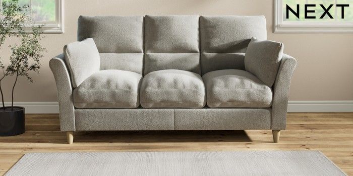 7.2.10 Buy Hartley Highback Relaxed Sit 3 Cushion 3 Seater Sofa Chunky Texture Dove Low Conical - Light from the Next UK online shop Click here to use our accessible website