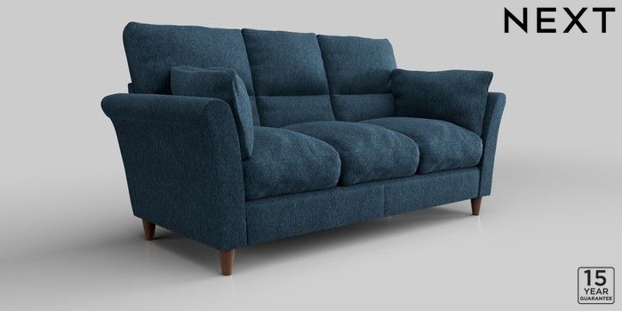 6.12.1 Buy Hartley Highback Relaxed Sit 3 Cushion 3 Seater Sofa Cotswold Chenille Dark Blue Low Conical - Mid from the Next UK online shop Click here to use our accessible website
