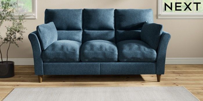 7.2.10 Buy Hartley Highback Relaxed Sit 3 Cushion 3 Seater Sofa Cotswold Chenille Dark Blue Low Conical - Mid from the Next UK online shop Click here to use our accessible website