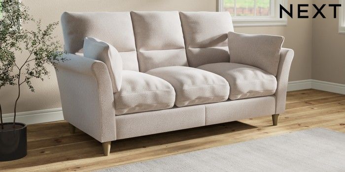 7.3.1 Buy Hartley Highback Relaxed Sit 3 Cushion 3 Seater Sofa Cotswold Chenille Oyster Low Conical - Light from the Next UK online shop