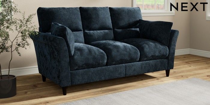 7.3.1 Buy Hartley Highback Relaxed Sit 3 Cushion 3 Seater Sofa Distressed Velour Midnight Blue Low Conical - Dark from the Next UK online shop