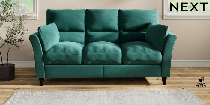 7.2.10 Buy Hartley Highback Relaxed Sit 3 Cushion 3 Seater Sofa Fine Chenille Easy Clean Dark Juniper Green Low Conical - Dark from the Next UK online shop Click here to use our accessible website