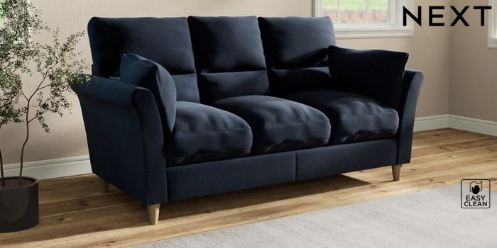7.3.1 Buy Hartley Highback Relaxed Sit 3 Cushion 3 Seater Sofa Fine Chenille Easy Clean Dark Navy Blue Low Conical - Light from the Next UK online shop
